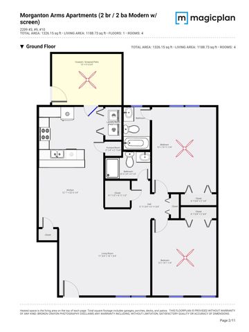 1,140 square feet, 2 bath, washer & dryer, and screened porch